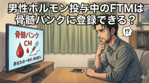 残念ながら、現在進行形で男性ホルモン(テストステロン)の投与を受けているFTM当事者は、骨髄バンクへのドナー登録ができません。